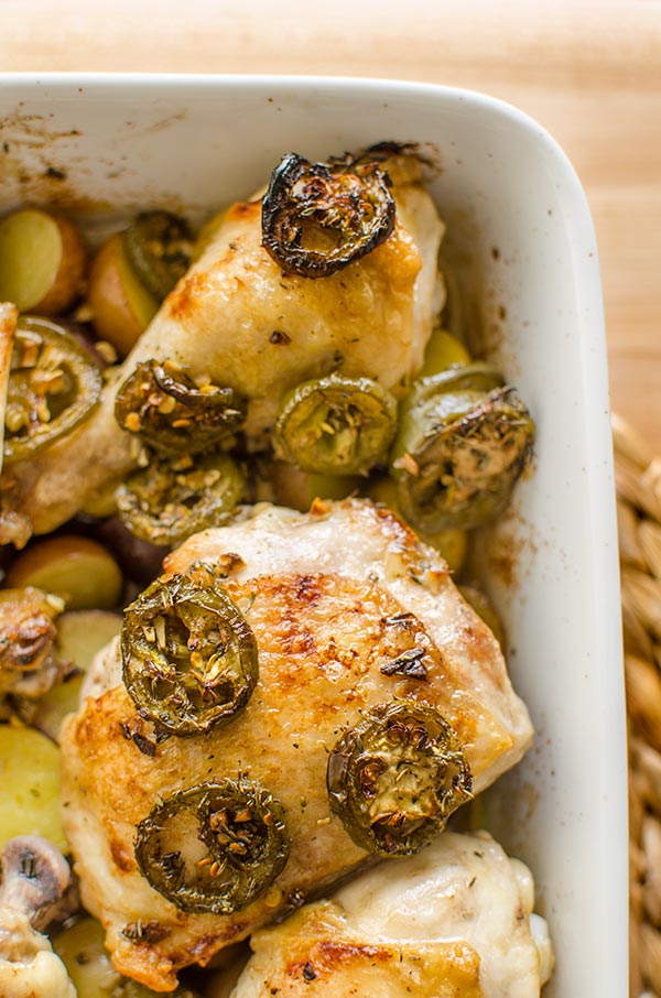 I wasn’t too excited about September being here until today. I know, we’re basically halfway through the month, so I’m a little slow on the uptake. I took a look at the current vibe of my homepage and realized that it still has all the summery vibes and very little fall happening. Not good! After all, fall and winter are my favourite seasons for cooking. This chicken and potatoes recipe is the perfect fall recipe and it incorporates two of my favourite ingredients to work with; jalapeno and balsamic vinegar. My love for this combination, comes from my dad who is obsessed with all things jalapenos.
