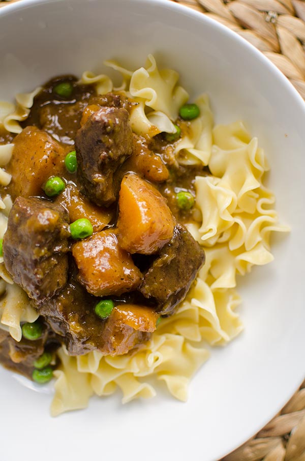 Make the perfect melt in your mouth and tender beef and butternut squash stew, made with stewing beef, butternut squash and peas. Cook it low and slow in the oven for two hours for the most delicious stew ever!
