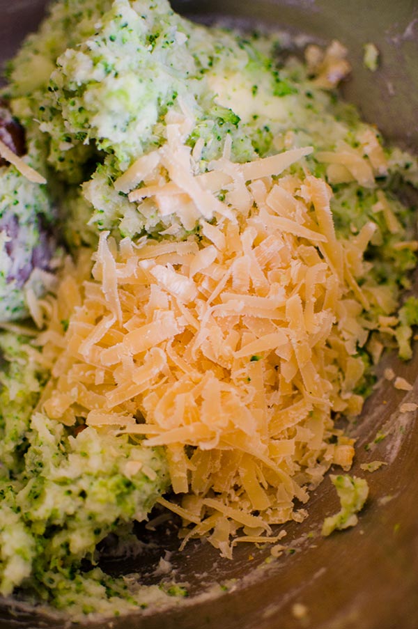 This recipe involves a couple of steps, but they are all so simple that it doesn’t even seem like a ton of work. The first step is baking the potatoes for about an hour, until they are tender enough to slice in half and scoop out the flesh. During that time, you can blanch the broccoli and chop it up so it’s ready to go.