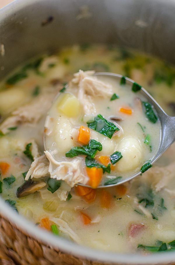 It isn't quite as thick and creamy as some of the other copycat chicken gnocchi soup recipes because I only use ¼ cup of half & half.
