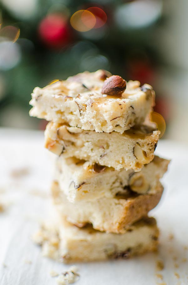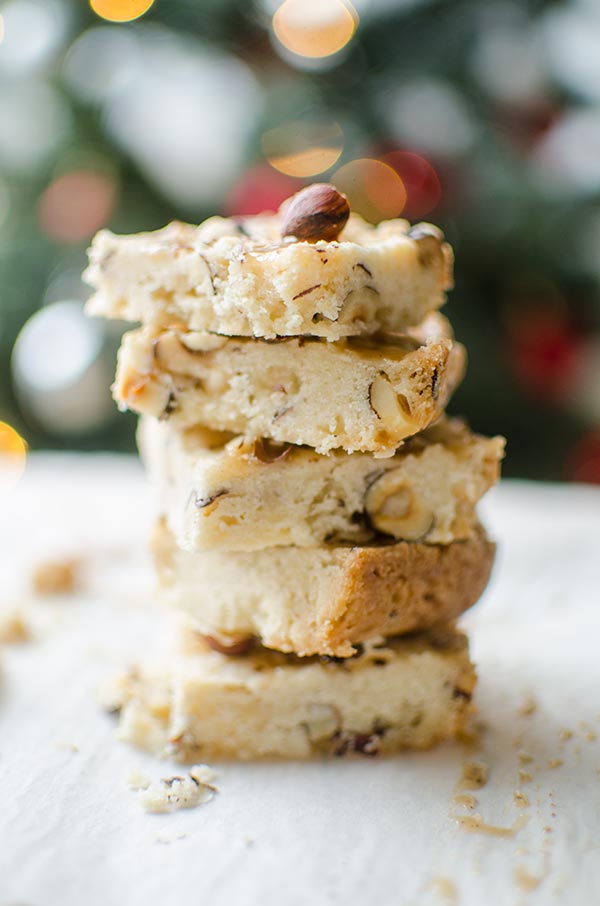 I’ve been making shortbread bars like these hazelnut shortbread bars for years. They are a staple of my holiday cookie platter, mostly because they are so simple to make!