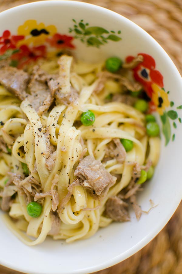 Make a delicious pasta with a slow braised lamb ragu made with lamb shoulder chops and peas. | livinglou.com