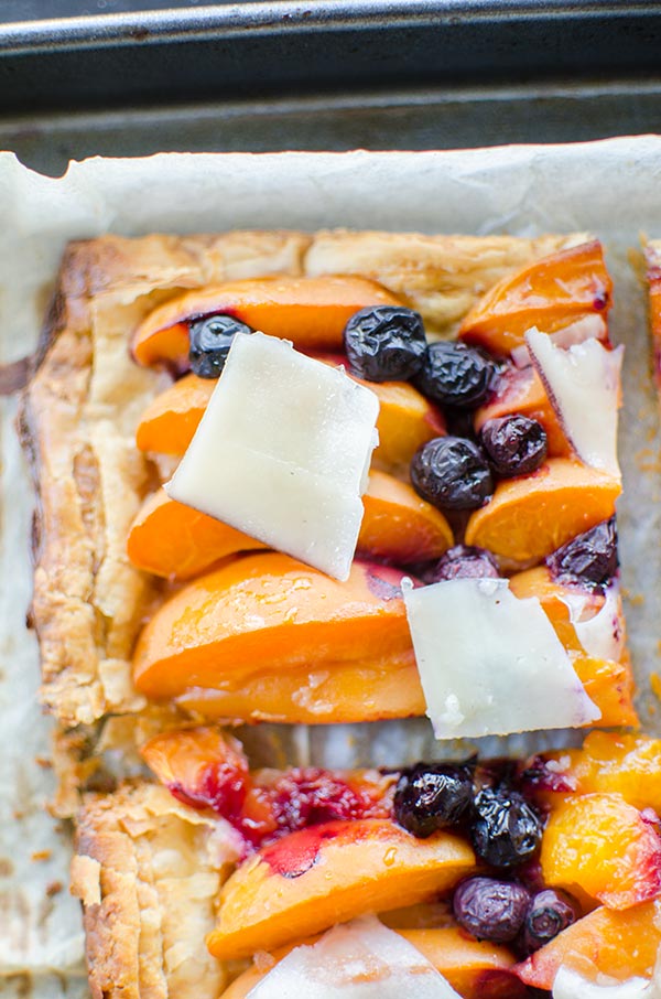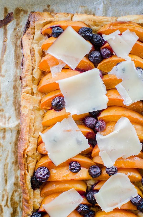 Make the perfect summer dessert with this simple puff pastry apricot blueberry tart topped with Tipsy cheese.