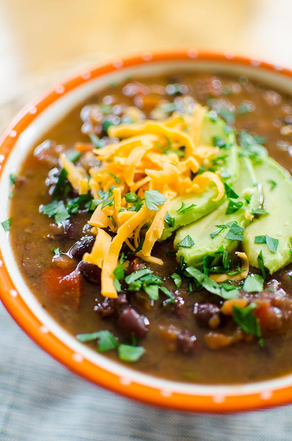 A healthy vegetarian soup, this recipe for slow cooker black bean soup is so easy to make and loaded with spices, black beans and carrots.