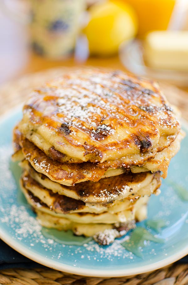 This recipe uses a fluffy buttermilk pancake as the base to create the best chocolate chip pancakes with three kinds of chocolate chips and lemon zest.