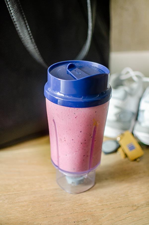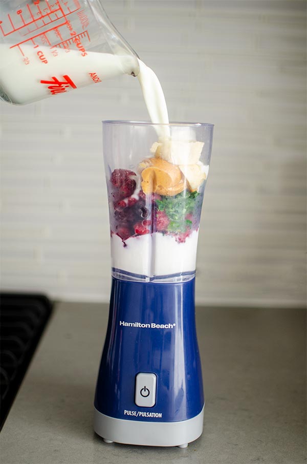 I like to use my Hamilton Beach Personal Creations™ Blender with travel lid (it’s under $20!).